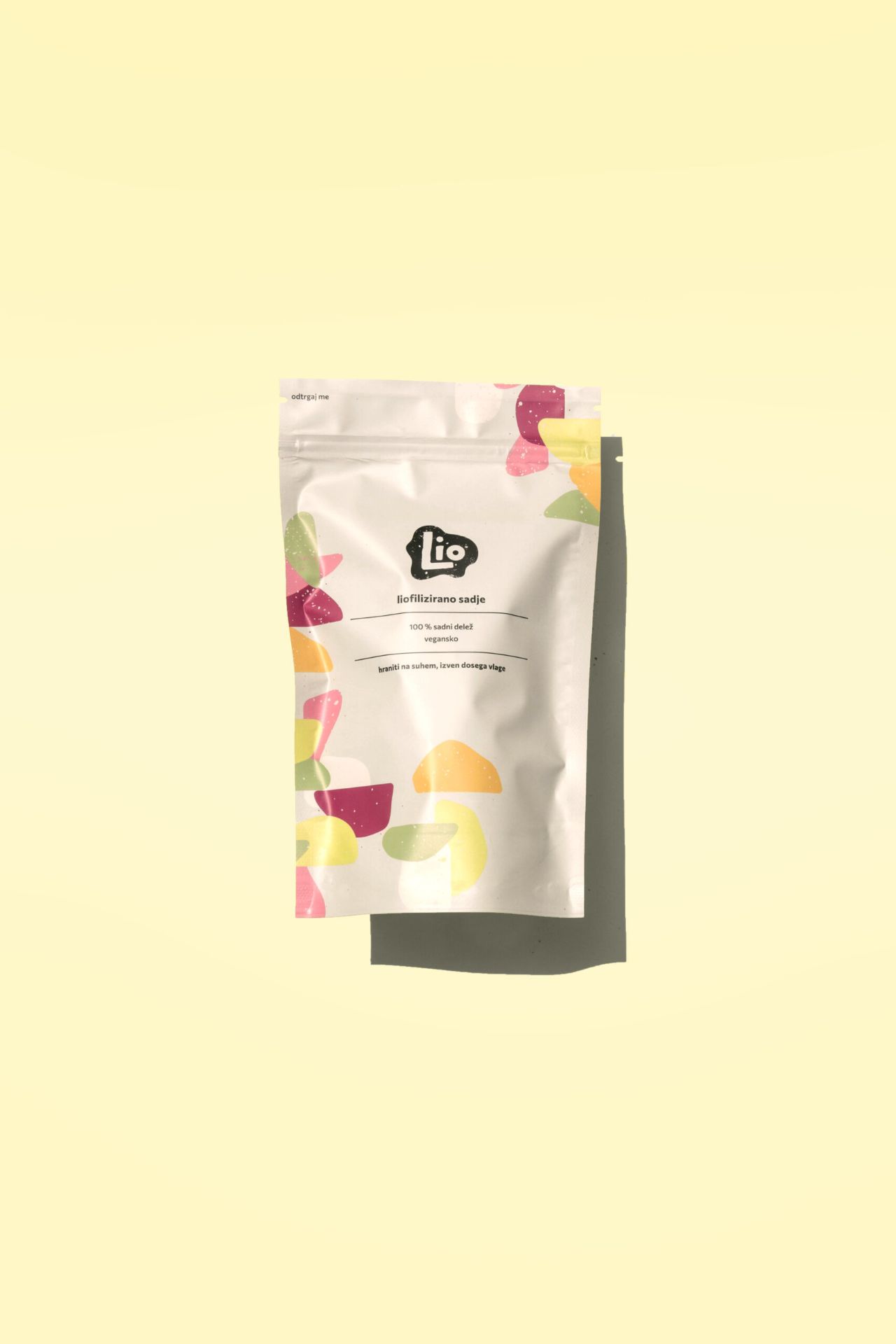 Paketek vsebuje različno liofilizirano sadje. 100% Vegansko, 100% naravno, brez dodanih sladkorjev. V paketku je različno sadje (odvisno od sezone), trudimo se vključevati čimveč lokalnega/slovenskega oz. bio sadja. Stalnica v paketu so jagode, kivi, maline, mango, banane in ananas (45g).
